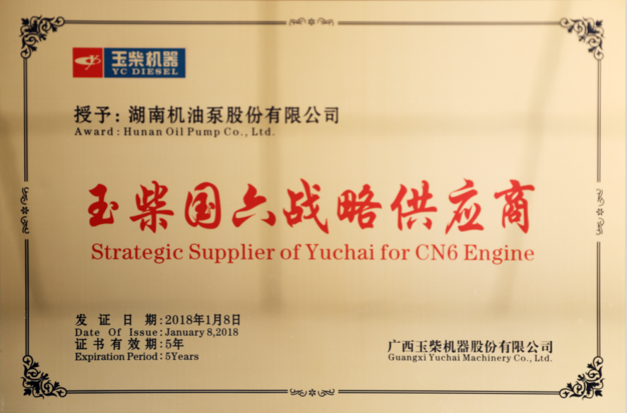 湖南機(jī)油泵股份有限公司作為玉柴國(guó)六發(fā)動(dòng)機(jī)的戰(zhàn)略供應(yīng)商之一和2017年度優(yōu)秀供應(yīng)商,同時(shí)也作為中國(guó)內(nèi)燃機(jī)工業(yè)協(xié)會(huì)確認(rèn)的“中國(guó)內(nèi)燃機(jī)工業(yè)排頭兵企業(yè)”。湘油泵隨著玉柴機(jī)器的發(fā)展做大做強(qiáng),在技術(shù)上不斷創(chuàng)新,每年設(shè)計(jì)開(kāi)發(fā)新產(chǎn)品達(dá)100多種,申請(qǐng)國(guó)家專(zhuān)利、發(fā)明專(zhuān)利授權(quán)200多項(xiàng),建立了國(guó)內(nèi)一流的試驗(yàn)中心、國(guó)家認(rèn)定企業(yè)技術(shù)中心,二十多項(xiàng)科研成果、新產(chǎn)品獲得國(guó)家、省、市科技進(jìn)步獎(jiǎng)。