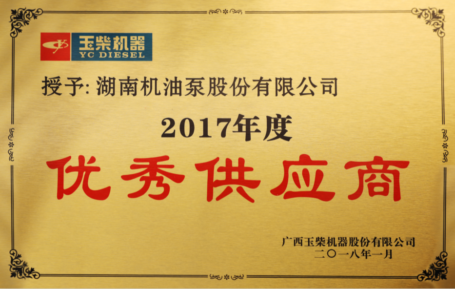 喜訊!我公司被玉柴機(jī)器評(píng)為2017年度優(yōu)秀供應(yīng)商、玉柴國(guó)六戰(zhàn)略供應(yīng)商!